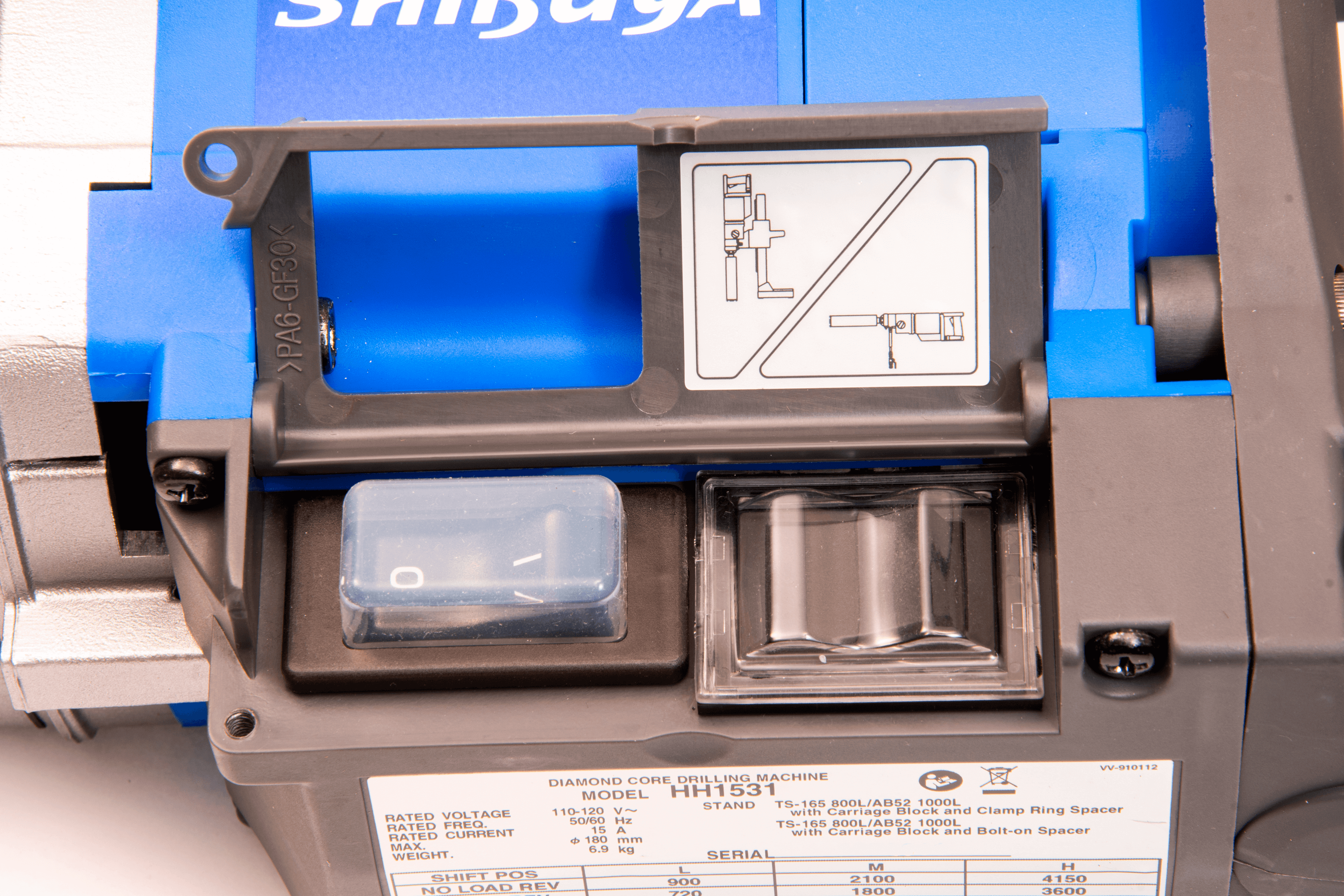 SKU DR2032 Manufacture Shibuya™ Discount Category Shibuya Select Model HH1531 Hand Drill Core Drill Motor HH-1531 Electric / Hydraulic Electric Amps 15 Amps Volts 110V - 120V Drill Watts 1600 Watts Drill Speeds 3-Speed Drill RPM 900 / 2100 / 4150 RPM Max Bit Capacity 3" Handheld / 10" Rig Mounted Quick Disconnect Included Not Available Column Length 39.4" 1000mm Column Size 2" x 2" Hybrid Drilling Stroke 26" Stroke Base Style ABV Base - Angle Vacuum, Base Base Size 13"x 18" Wheels on Base Yes Water Ring Sold Separately Carrying Case Case Included Working Pressure No Max Pressure No Hyd Oil flow No Warranty 2 Years Shipping Weight 95.0000 Unboxed Weight 82 UPC BARCODE 849738030473 Made In Japan - Brochures